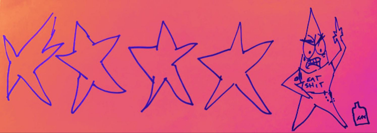 But then you left me four stars. Out of five. And that shouldn’t matter one bit, but it really does.